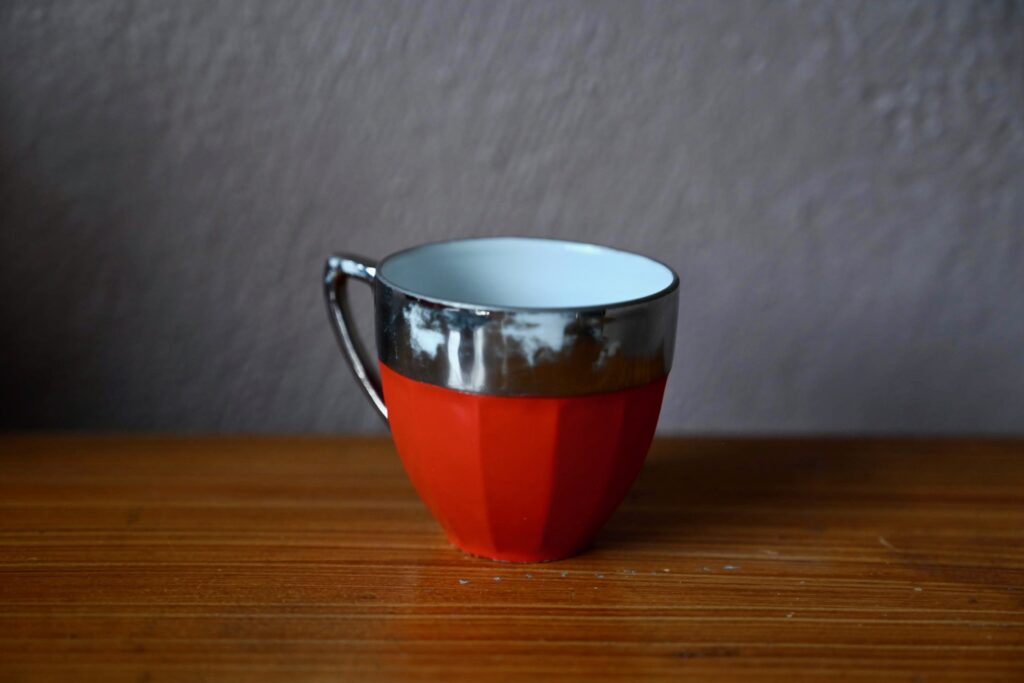 Tasses : 6cm de diamètre et 5cm de hauteur.