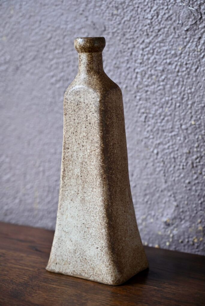 Avec sa forme de bouteille déformée, ce soliflore en grès nous a touchés. Un col rappelant celui des bouteilles de vin se prolongeant sur un corps étiré, ce vase est une pièce originale. On aime son émail moucheté beige et marron renforçant l’esprit brut et wabi-sabi de la pièce. Petite pièce déco charmante, ce vase en grès sera une bien jolie pièce déco.