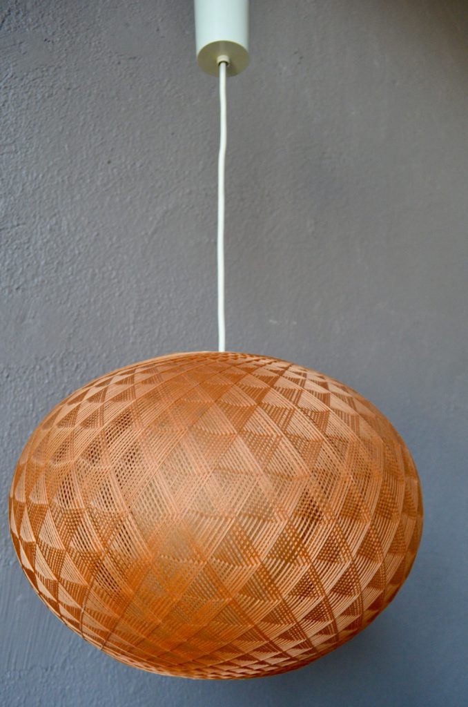 Toute simple et terriblement attachante, cette jolie suspension est une production vintage des années 60. Les fils entrelacés diffusent une jolie lumière pour une ambiance empreinte de douceur. La lampe est chaleureuse dans des couleurs douces et chaudes.
