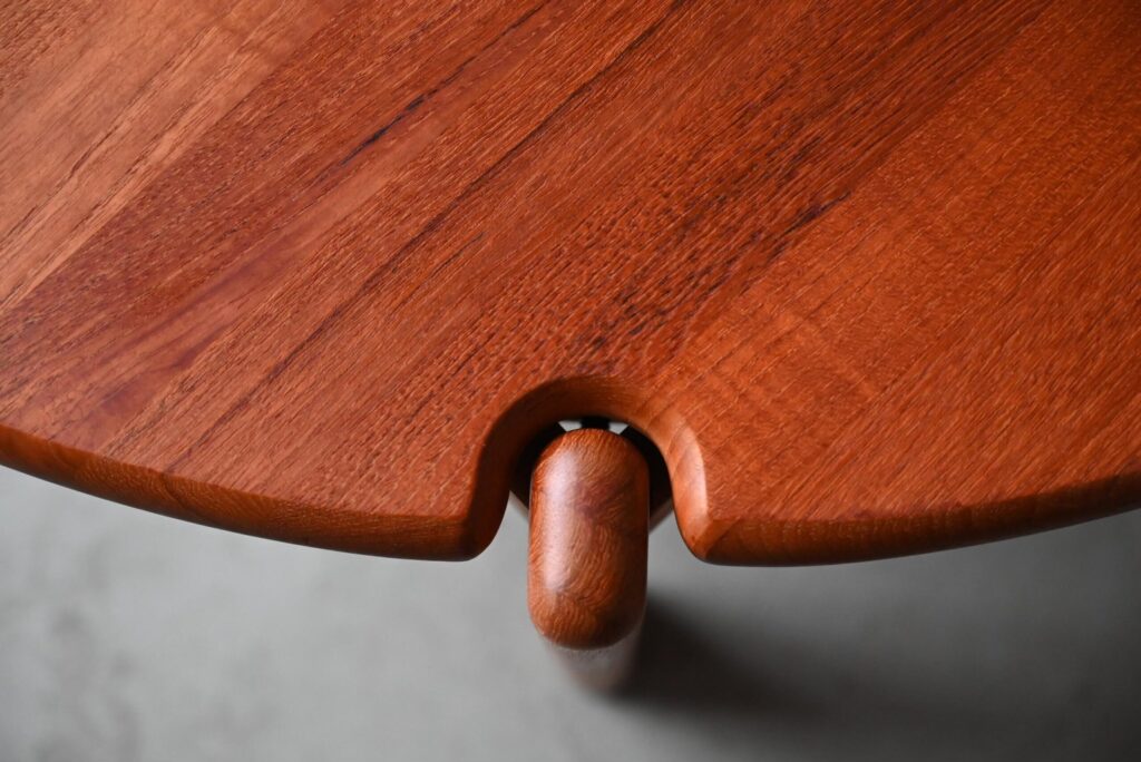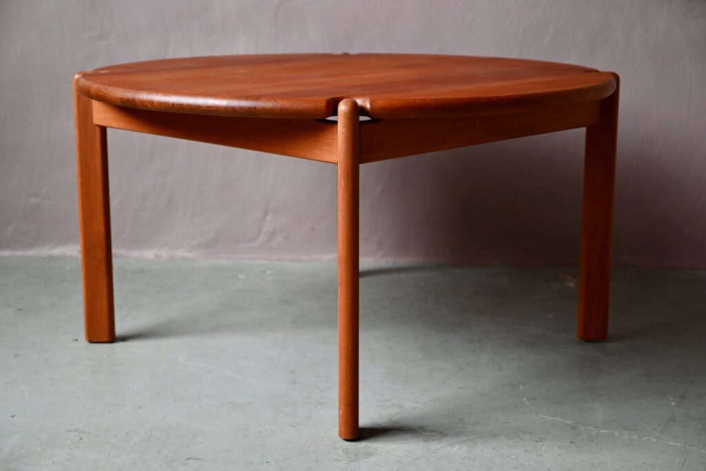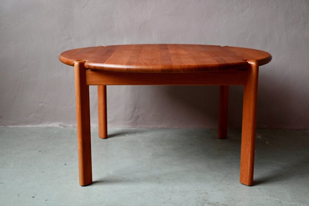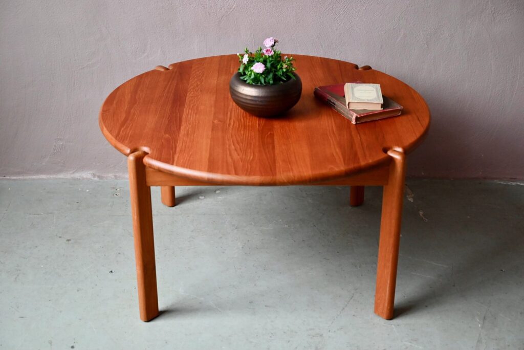 Cette jolie table basse ronde est une production vintage. Nous y retrouvons bien tous les attributs du design scandinave : des lignes adoucies, l’utilisation du bois pour son aspect chaleureux et son design minimaliste et harmonieux. La table basse dévoile de jolies lignes, des angles arrondis, des pieds découpant harmonieusement le plateau. Elle est réalisée dans l’épaisseur de la matière, pour un aspect réconfortant et une présence simple et nature.