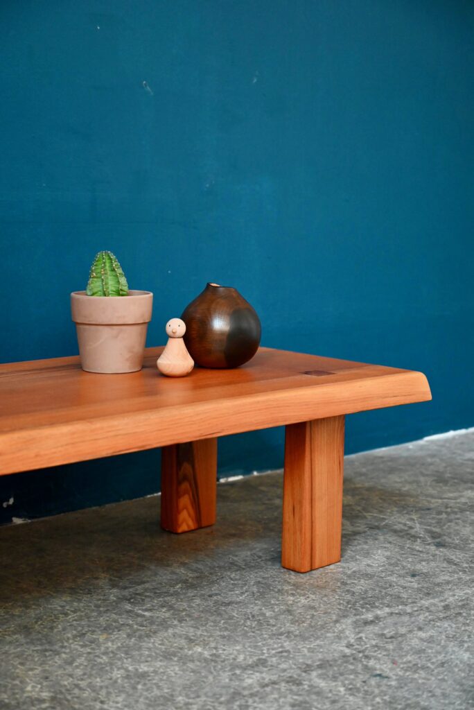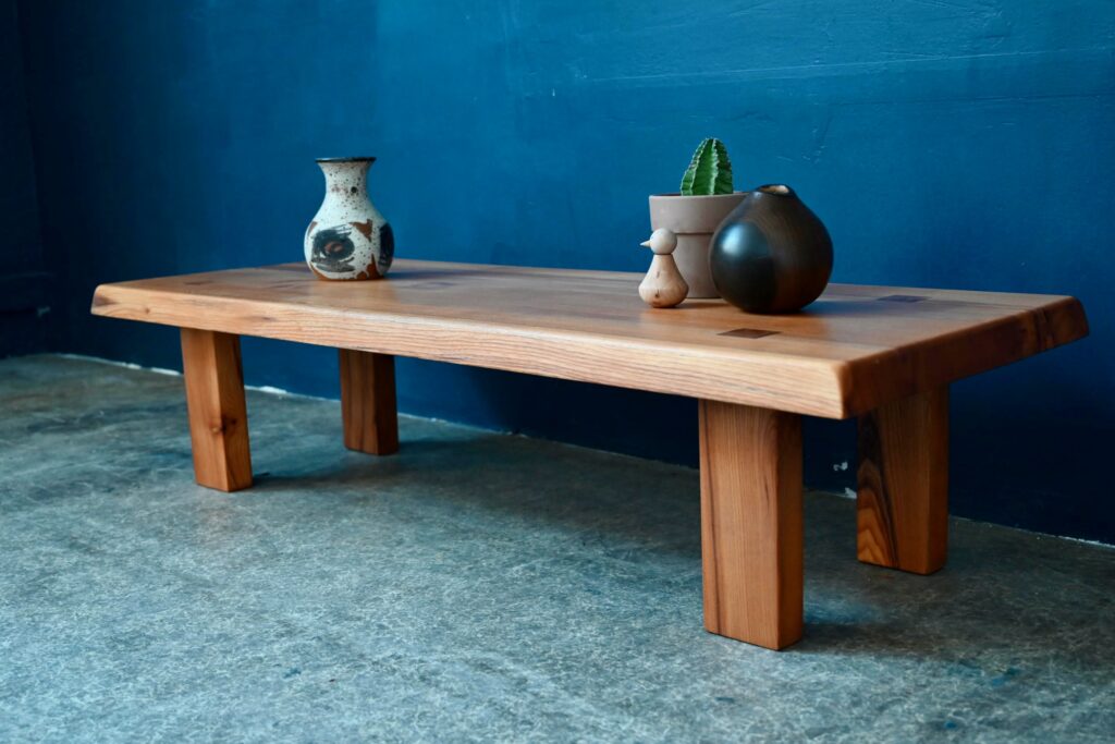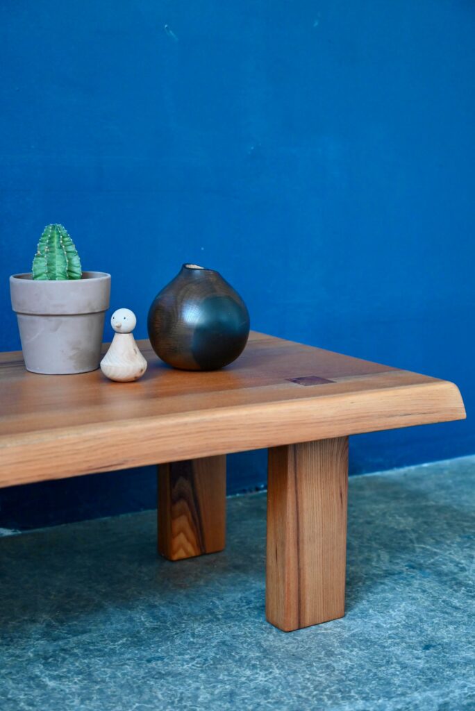 Less is more… En orme massif, cette table iconique propose un design minimaliste : 4 pieds épais et, un long et étroit plateau.”T08″, c’est le nom de code pour cette superbe pièce de design signée Pierre Chapo! La finition brutaliste met en avant la qualité et la douceur des assemblages. Dessiné dans les années 60, nous aimons l’efficacité des lignes, la beauté des matières et l’ingéniosité des assemblages. Intemporelle, plus on la regarde, plus on l’aime! Pièce remarquable, elle sera la pièce maîtresse d’un salon cosy!