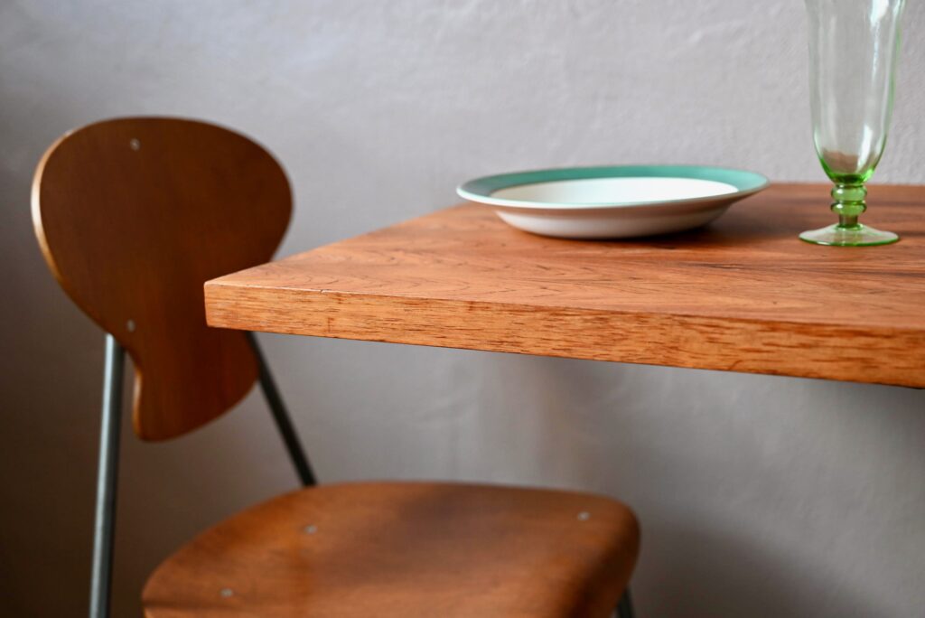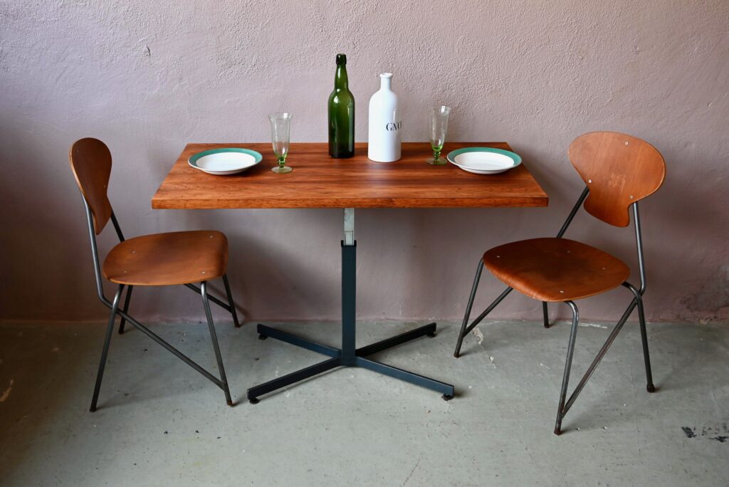 Vous ne serez plus jamais pris au dépourvu! Cette table monte & baisse des années 60 éditée par “Ilse” vous permettra de passer de l’apéritif au plat principal d’une simple pression sur son levier astucieux. Rectangulaire, son plateau en bois affiche un placage original et très élégant. Le piétement en croix tout en métal est sobre et assure une grande stabilité. Alliée parfaite des espaces restreints, cette table éditée par Ilse est aussi belle que pratique.