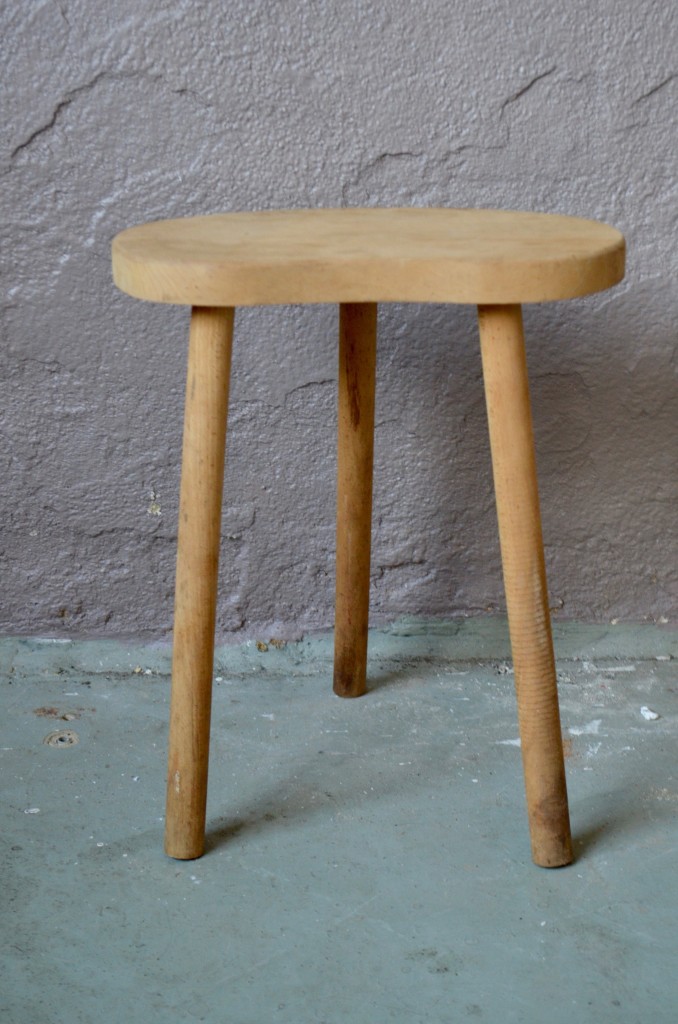 Le tabouret de traite est en bois massif brut. Il dispose de 3 pieds et d’une assise en forme de haricot. Il est stable et en bel état. Nous disposons de 2 pièces à l’Atelier.