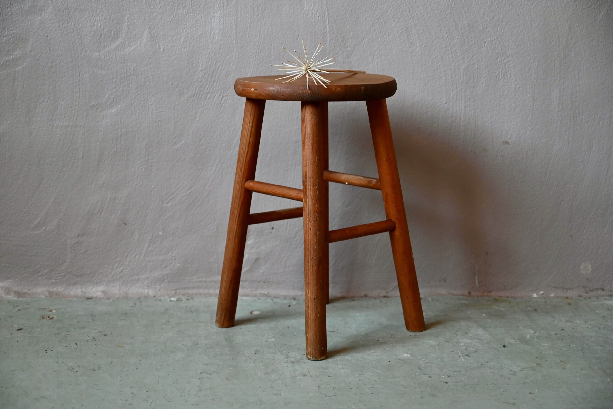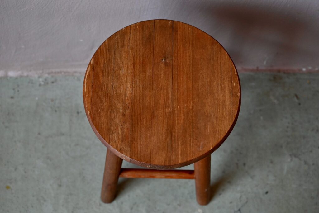La structure du tabouret de ferme est en bois massif teinté. Dans un esprit dépouillé, rustique et brutaliste, cette assise est le parfait accessoire bohème. Il sera utile en assise d’appoint ou pourra être détourné dans une salle de bain ou dans une chambre.