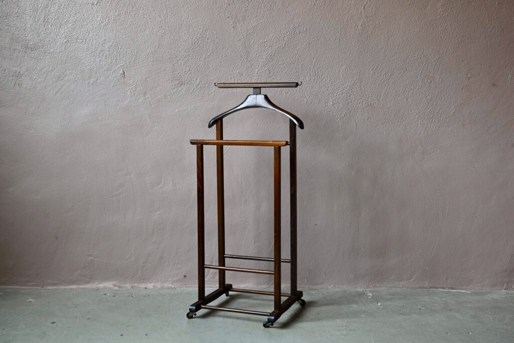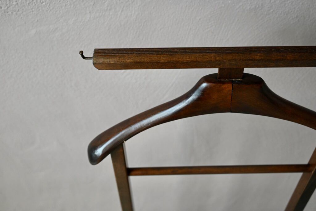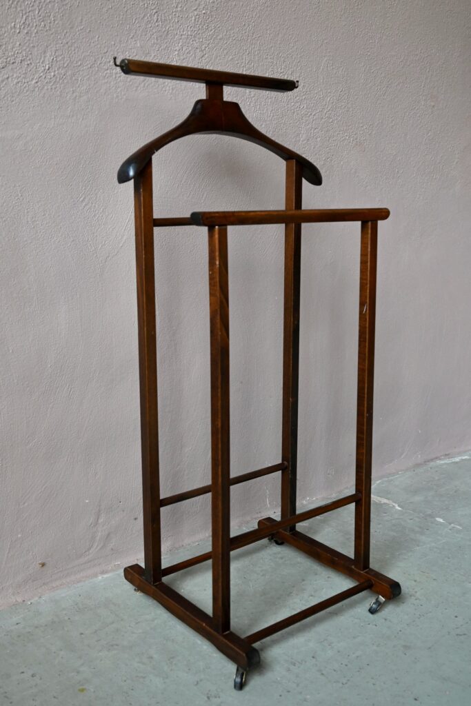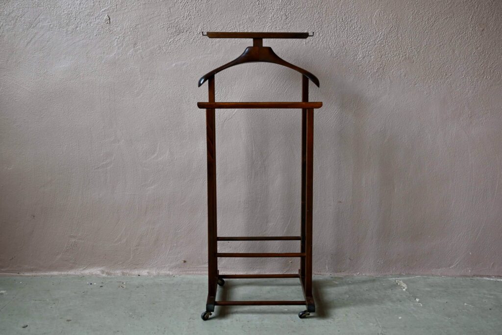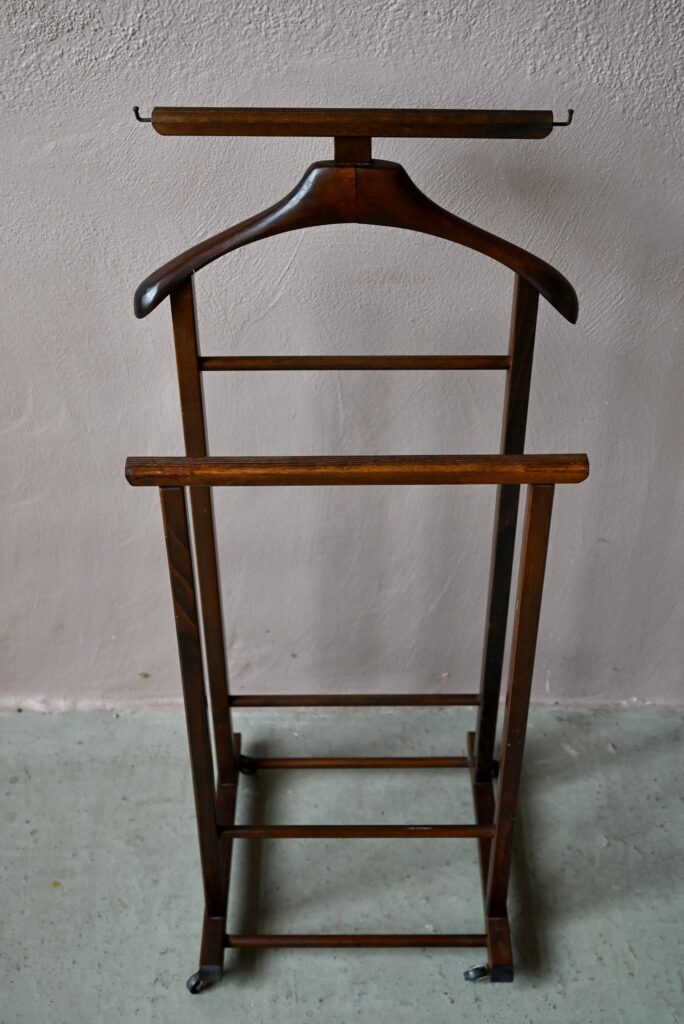 Ce modèle date des années 60 et est en bel état. Des traces d’usage sont visibles. Le valet vintage est parfaitement fonctionnel. C’est un modèle original avec ses deux portants.