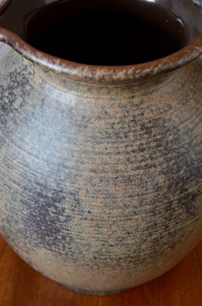 Ce grand vase allemand des années 60 prend la forme d’un pichet ventru à l’émaillage épais et nuancé. Posé au sol ou sur un meuble de grande taille, cette céramique vintage apportera sa touche vintage à la décoration intérieure.