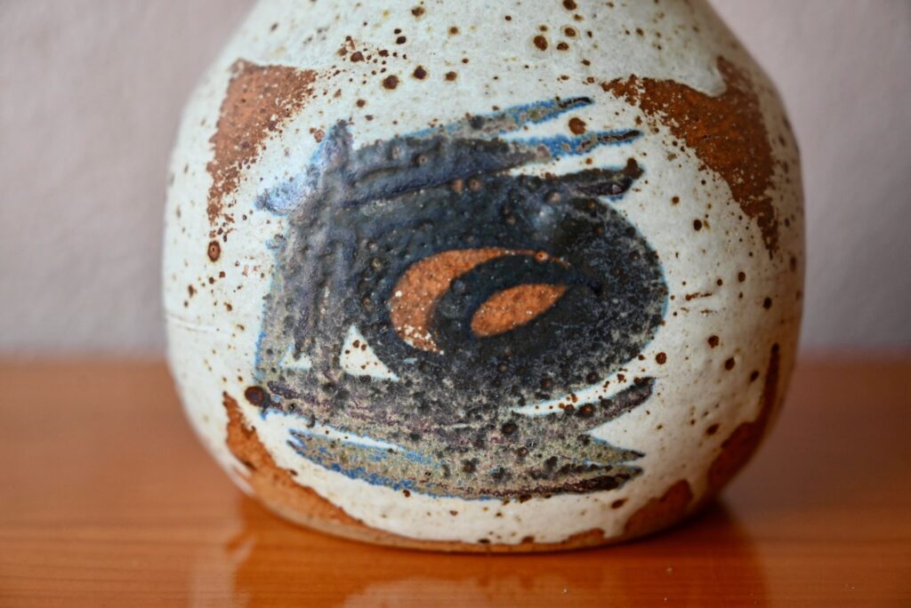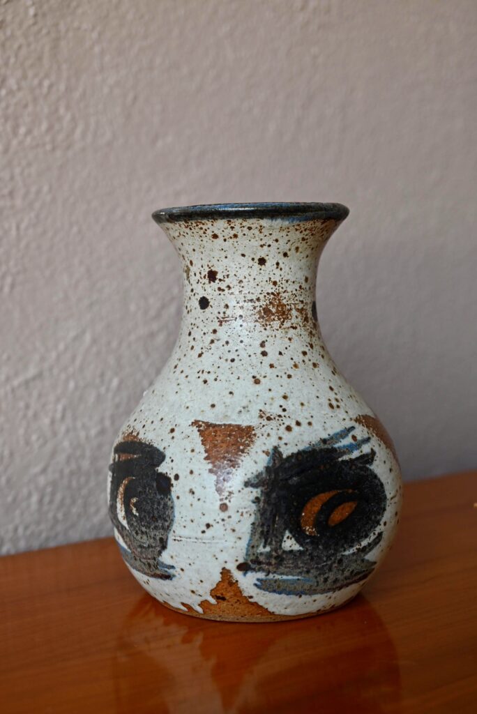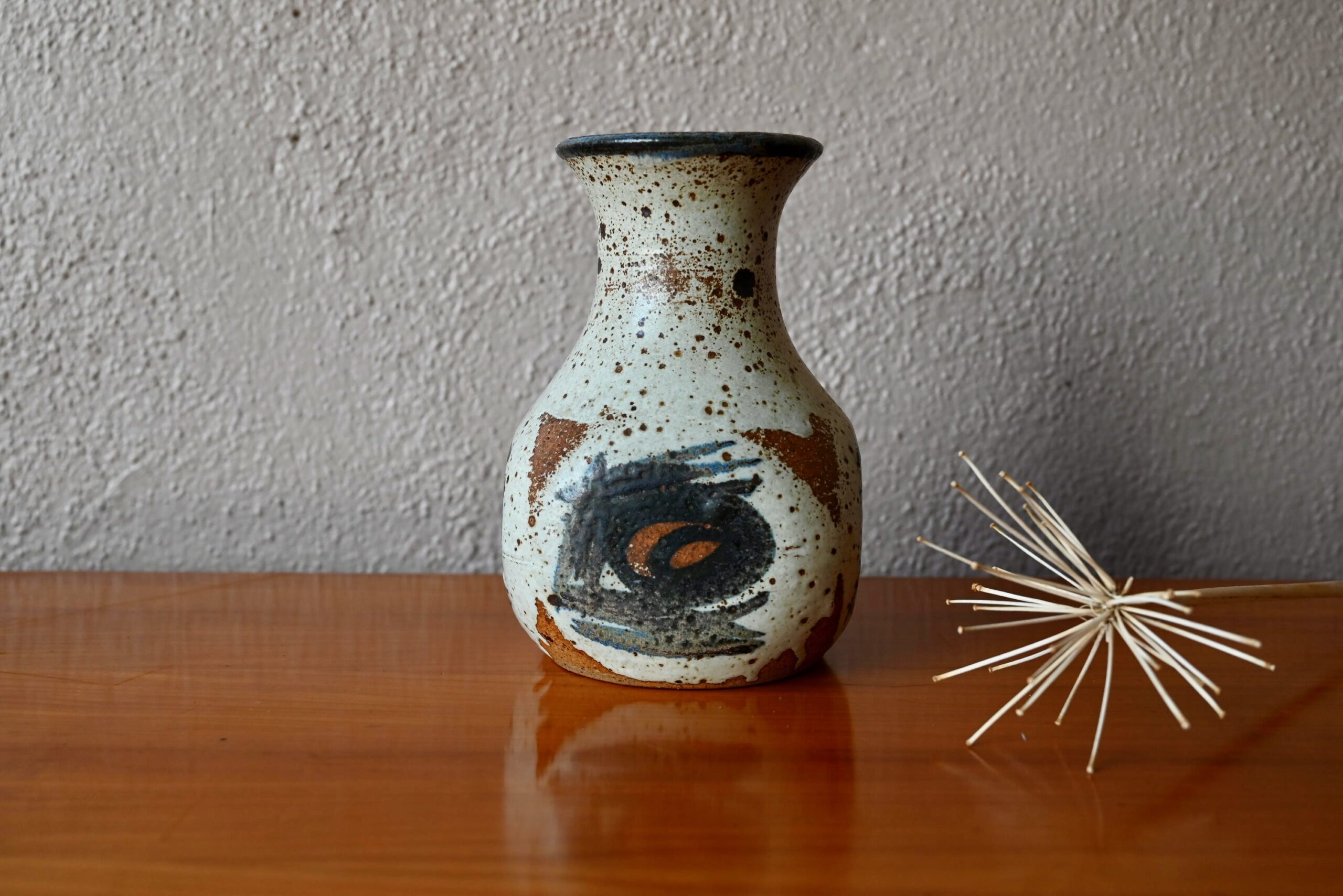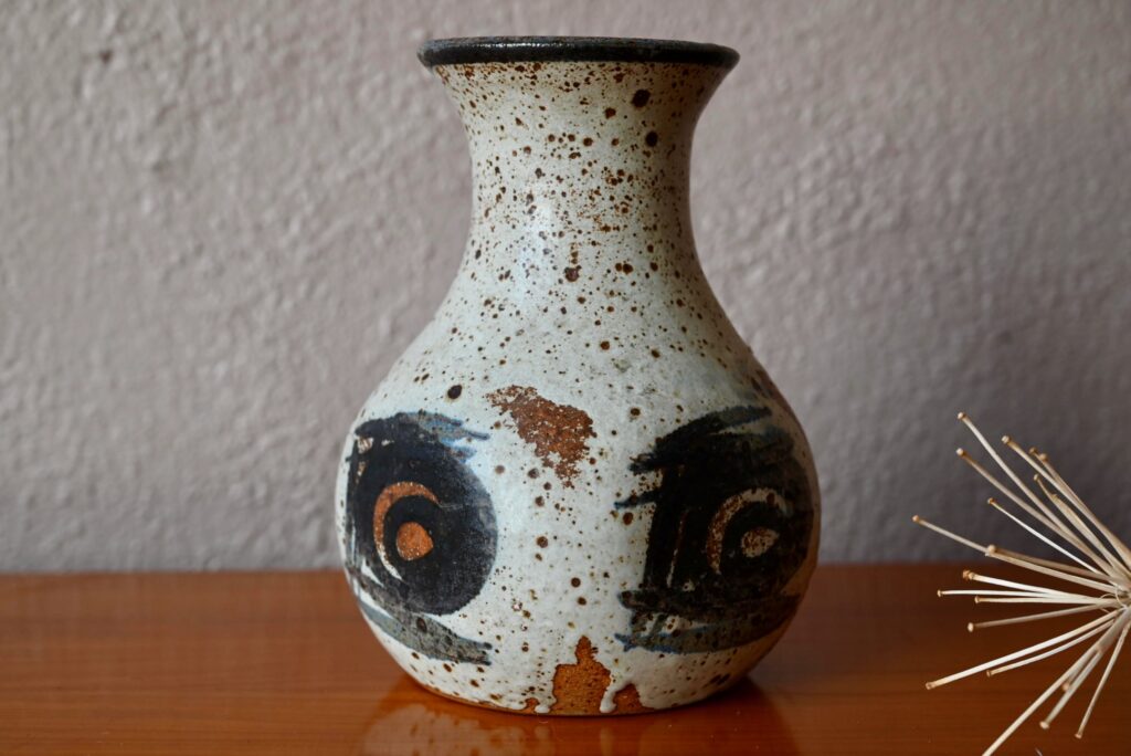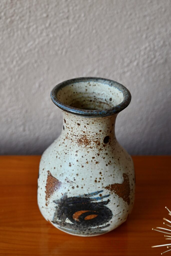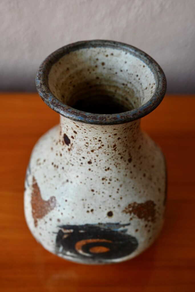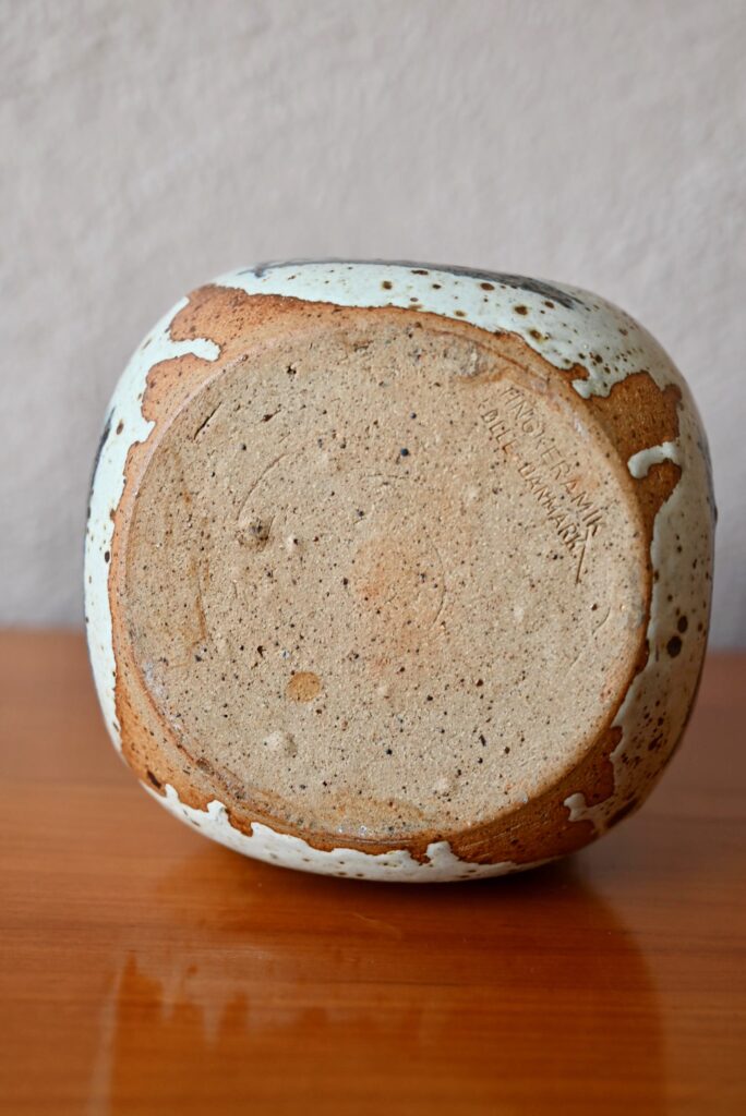 Le vase danois est en très bel état, il est estampillé sur le dessous. Il est en grès pyrité, une partie brute, décors wabi-sabi.