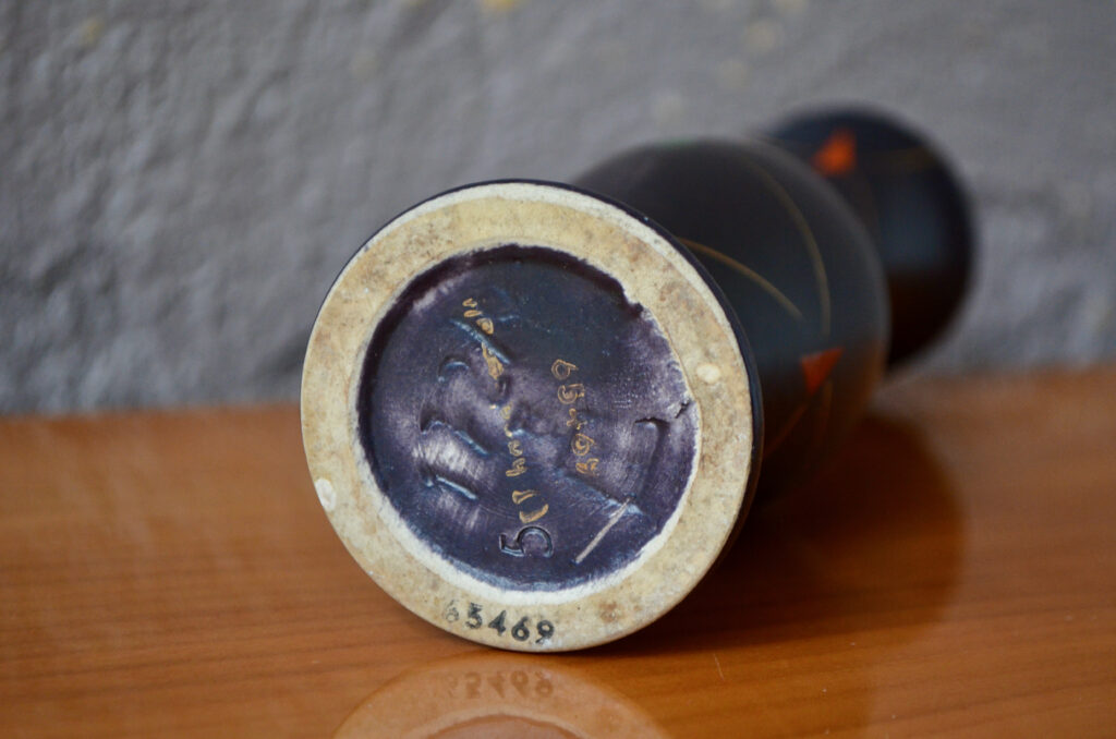 Le vase est en bel état. Des traces de frottement sont visibles sur l’émail. Il est signé sur le culot. La céramique est une production Marzi et Remy.