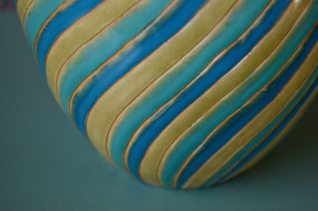 Avec son décor multicolore enroulé en spirale, ce joli vase est une pièce déco originale. De belle facture, le vase vintage apporte son grain de couleur et son authenticité à la déco intérieure.
