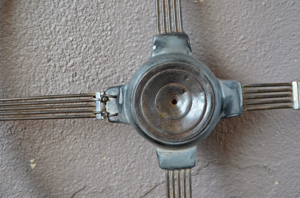 En route pour les vacances! C’est avec beaucoup d’émotion que nous avons déniché le volant du “Magic Bus” des Who!!! ou d’un autre ancien autobus scolaire… Réalisé en métal et cerclé de bois, il est de grande taille! Il possède un formidable vécu. Pièce déco unique, il n’a pas fini de nous transporter!
